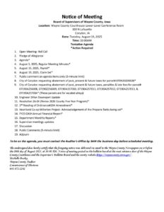 Supervisor Mtg Agenda August 19, 2025