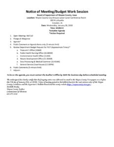 Supervisor Mtg_Budget Work Session Agenda January 28, 2026 Posted January 27, 2026 by Michelle Dooley